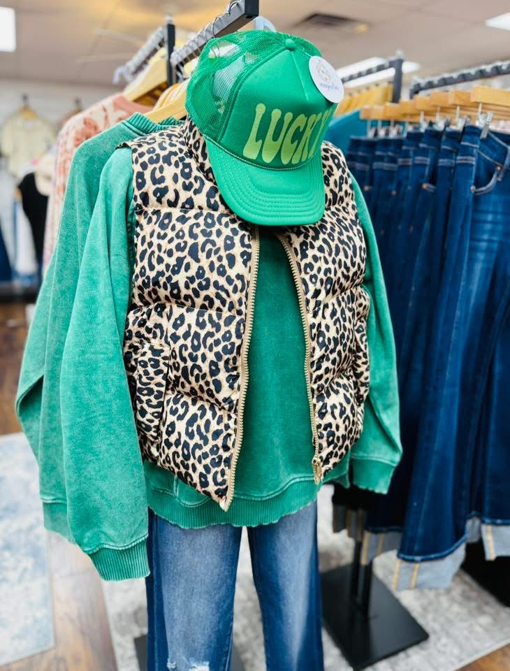 Acid Wash Fleece Sweatshirt Green