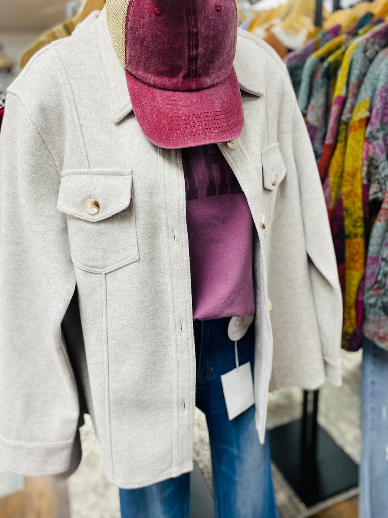 Heather Grey Button Down Shacket Jacket