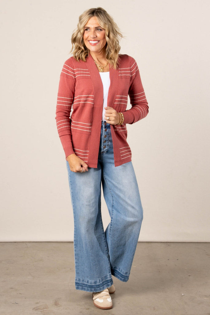 Stitch Stripe Cardigan Marsala