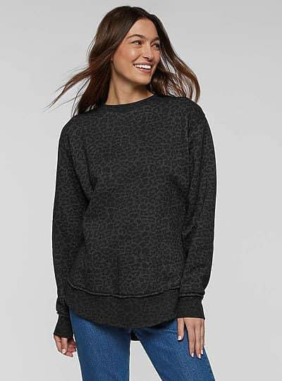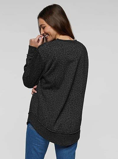 Weekend Fleece Casual Sweatshirt Black Leopard