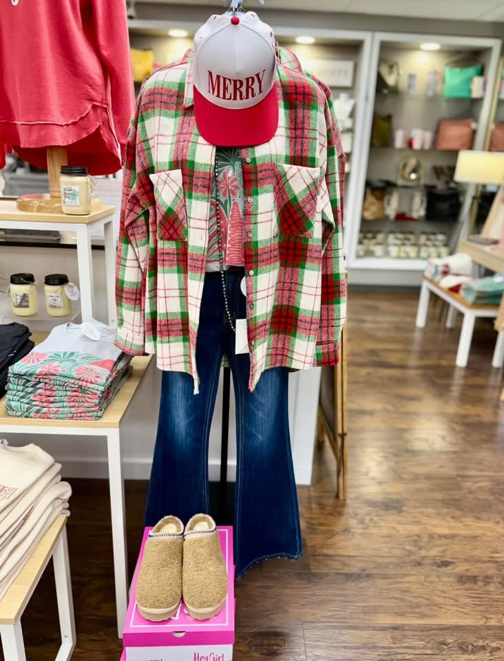 CC Brand Embroidered MERRY Trucker Hat Red/White