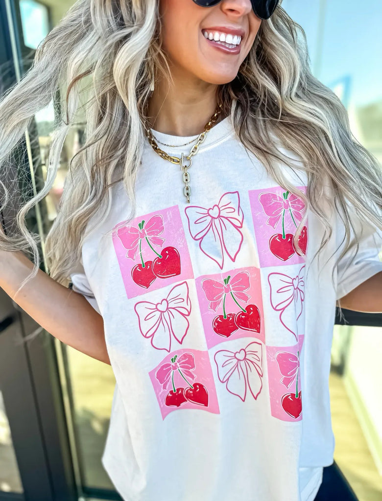 Comfort Colors Cherry Hearts & Bows Tee