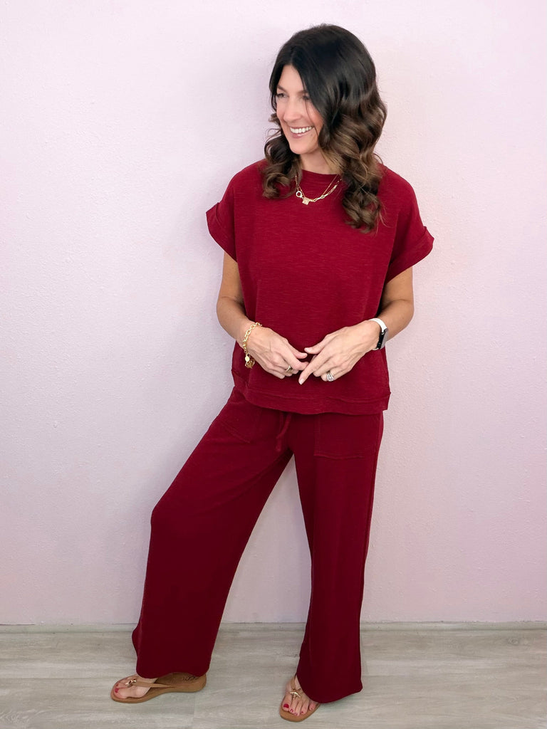 Cotton Slub 2PC Set Dark Red