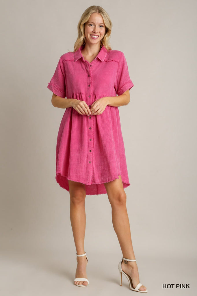UMGEE Mineral Wash Collared Dress Hot Pink